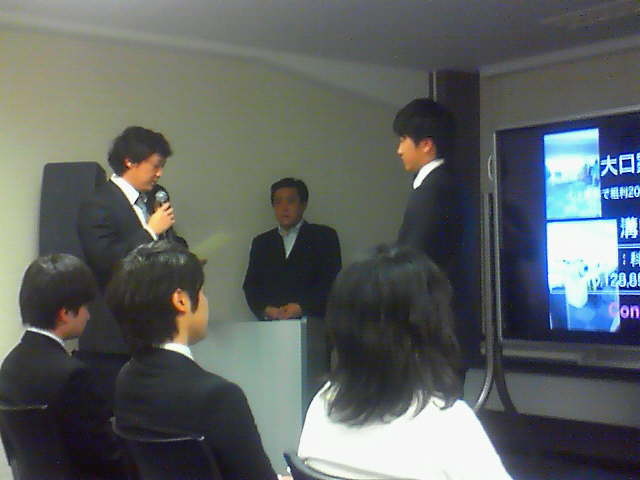 2012年12月18日 受賞式とパーティ 最優秀賞は、福嶋君と溝口さん二人とも、時には涙し、時には葛藤しながらも最後までやり遂げてくれました。きっと知らず知らずの内に、ひとつひとつのことを完成させながら、力をつけてきているとことと思います。他にもコピー機、リプレイス台数の1位、2位の中島君、中村君店舗その他での販売優秀賞の上野君、森谷君、種田君、高橋君、全社員が選ぶ貢献賞には、浦野さんと受賞されました。さあ〜12月からの四半期は誰が受賞するか楽しみです。まだまだ始まったばかり・・・。パーティは賑やかに・・・ 「OAランド社長日記☆」カテゴリの最新記事 < 前の記事次の記事 > トラックバック